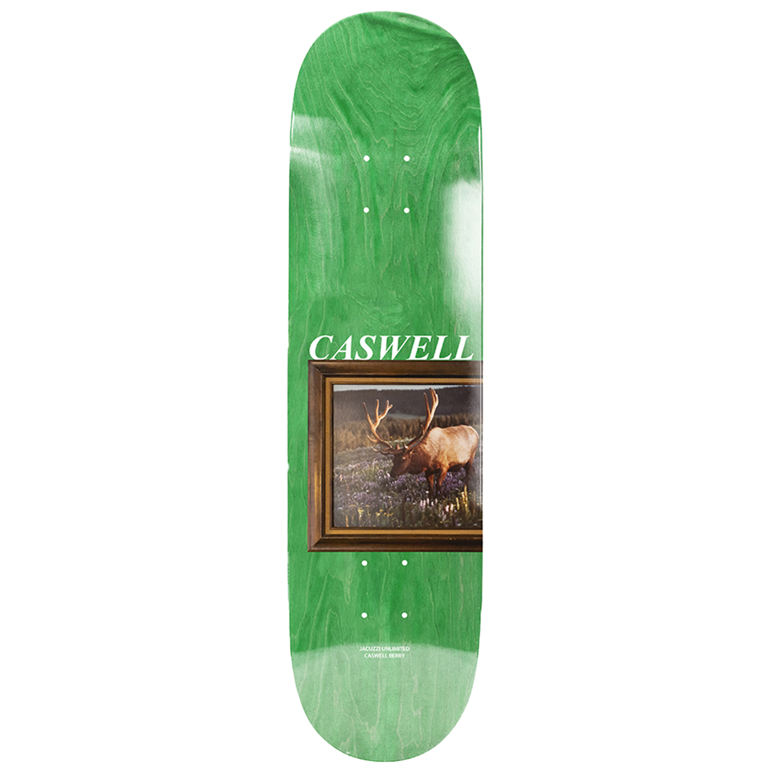 The Jacuzzi Caswell Berry Venison EX7 8.25" Skateboard Deck is Caswellβs pro model, built on a classic popsicle shape with a 14.25β wheelbase for balanced control. Constructed from 7-ply North American maple and pressed with epoxy resin, this deck offers reliable strength and pop. Top and bottom ply colours may vary.
