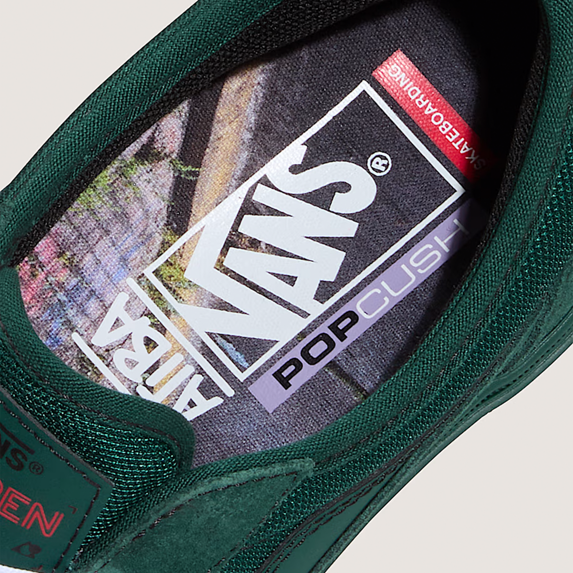 - Signature detailing – Curren Caples tongue print and Vans checkerboard hangflag.